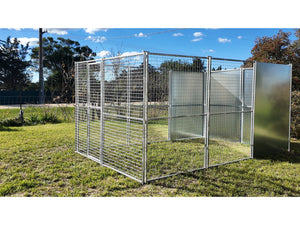 Single Bay 2.5m x 3.75m x 1.85m Dog/Chicken Run with 50mmx50mmx3mm mesh and solid panels