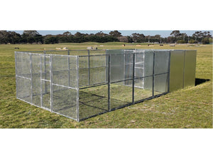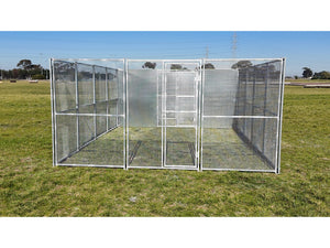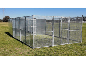 3.75mx7.5m single bay dog/poultry run with internal bay 25mmx25mm mesh and solid panels