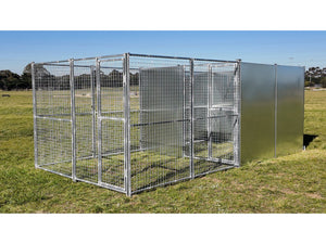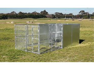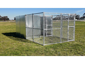 2.5mx5m single dog/poultry run with internal bay 50mmx50mmx4mm mesh and solid panels