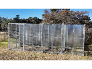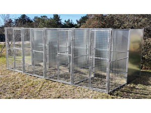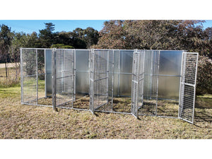 4 Bay 5m x 2.5m x 1.85m dog/chicken run, 50mm x 50mm x 4mm mesh panels and solid panels